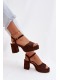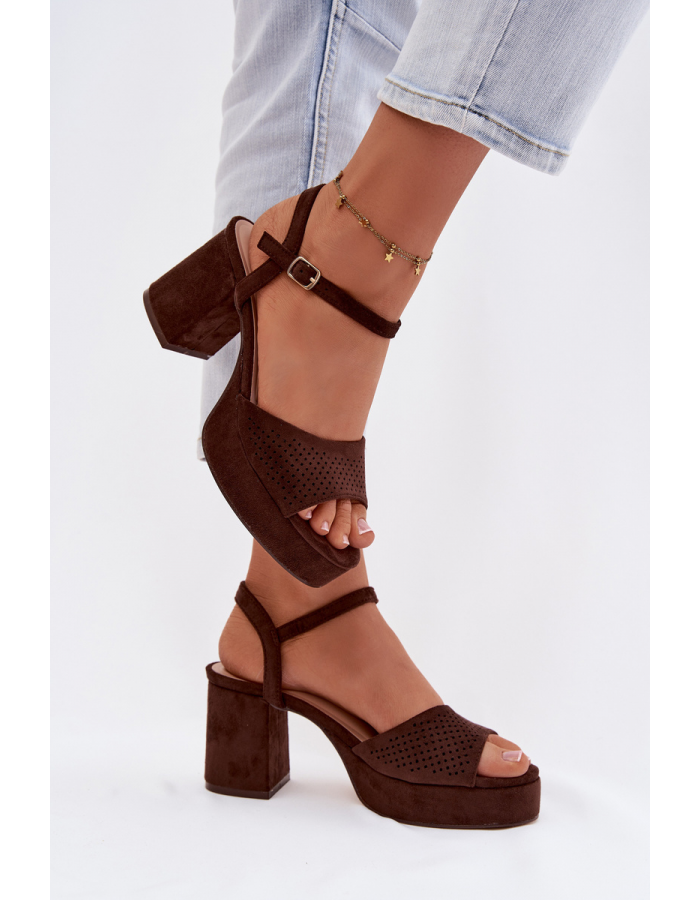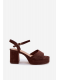 Čokoládové sandály na sloupku krásně doplní outfity v béžových, krémových nebo světlých tónech a dodají jim elegantní akcent.