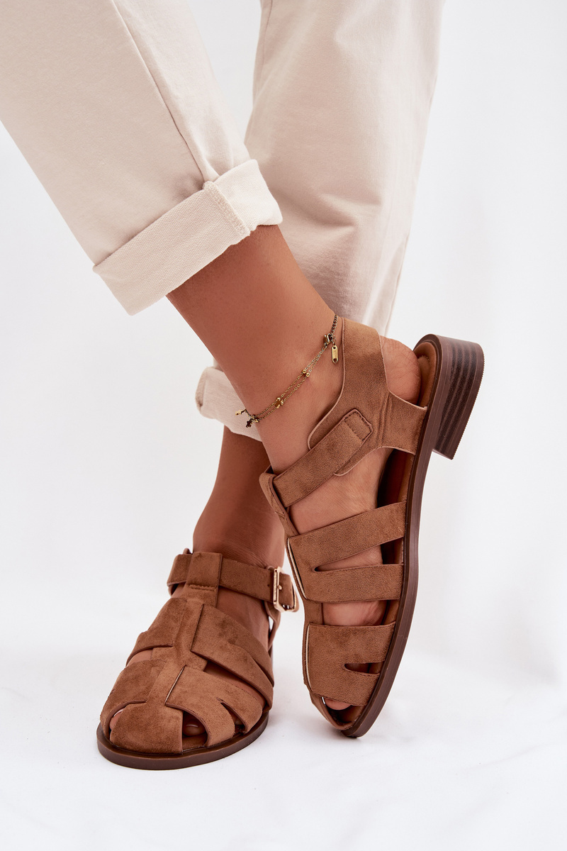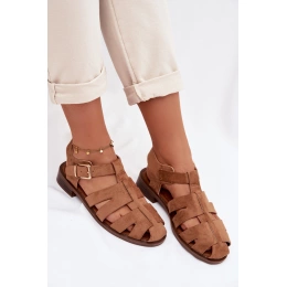Camel římské sandály se zlatou přezkou krásně doplní outfit v béžových, krémových nebo bílých tónech a podtrhnou letní lehkost.