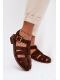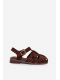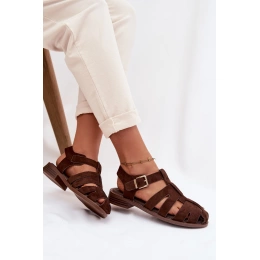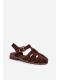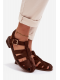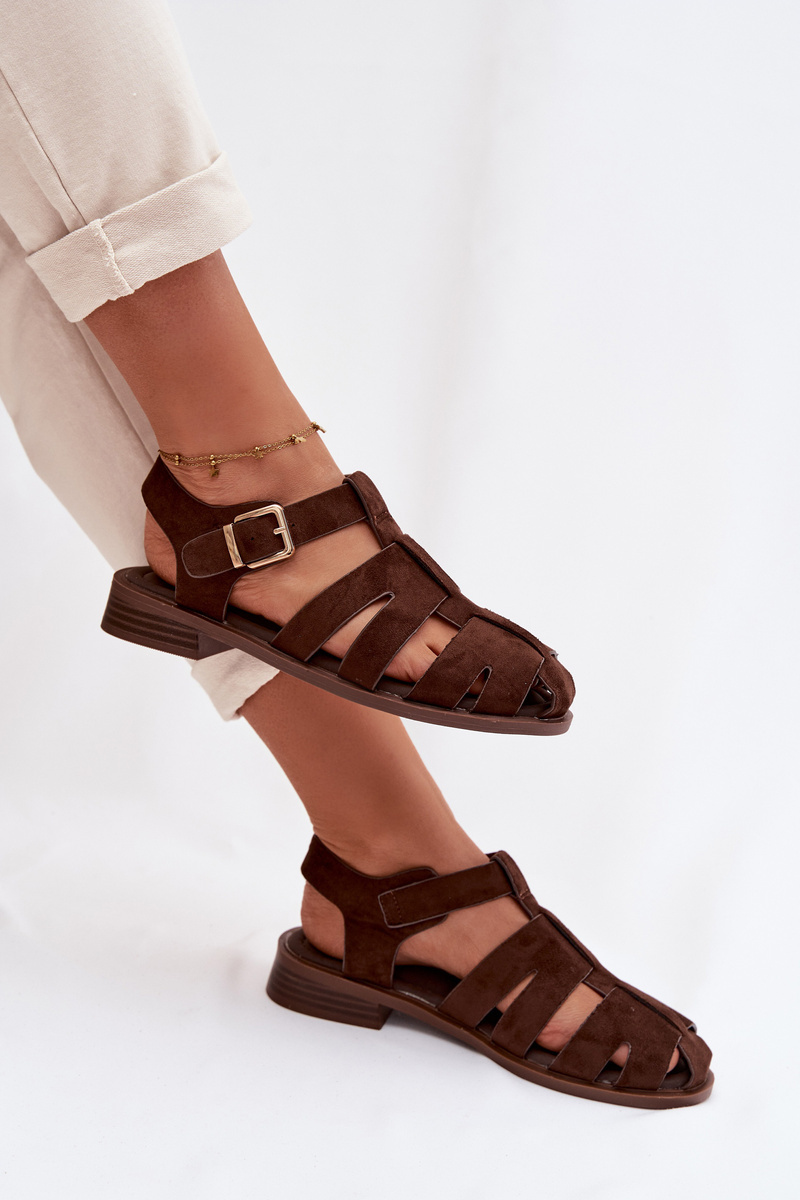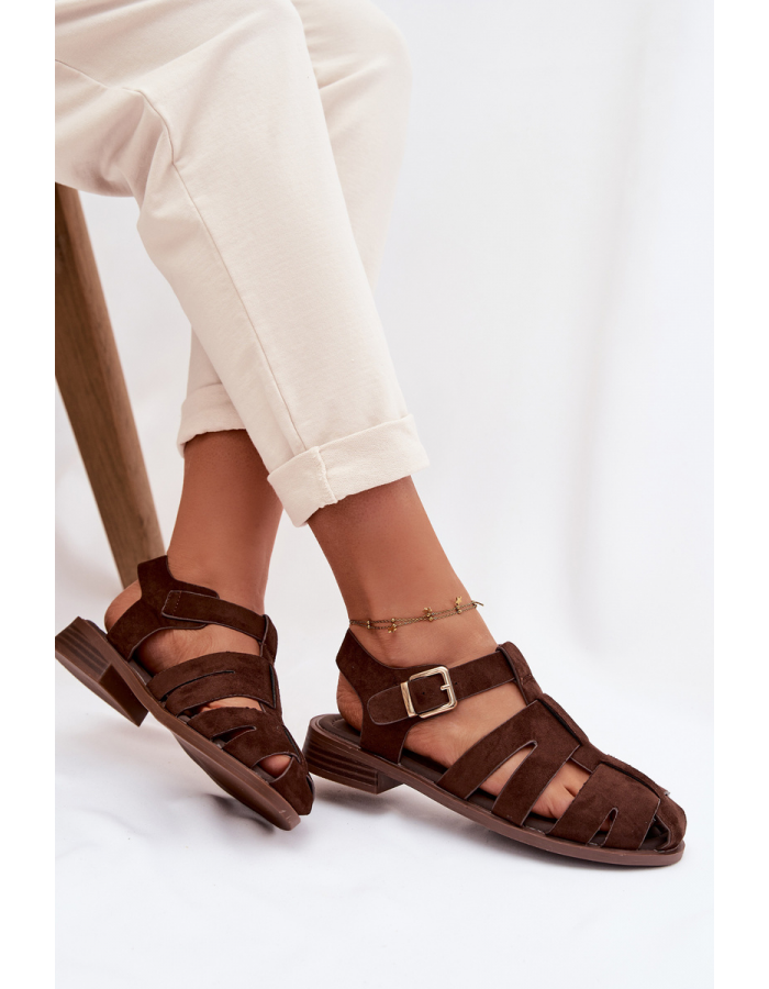 Čokoládové římské sandály se zlatou přezkou krásně doplní šaty v přírodních tónech, sukně i lehké kalhoty a podtrhnou letní eleganci.