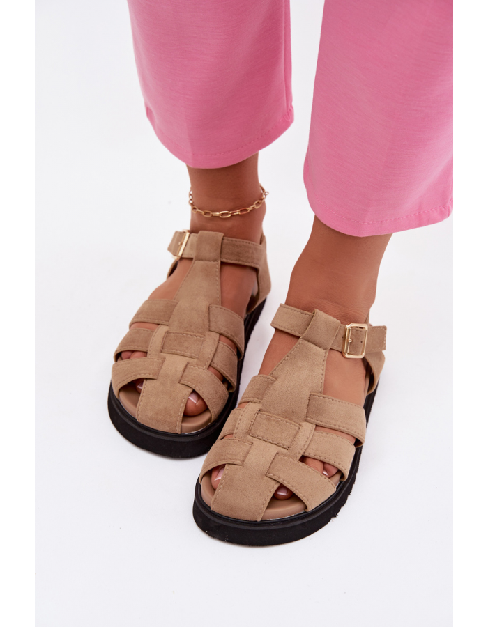 Dámské sandály Terelina v béžovém provedení zaujmou moderním pojetím římského stylu doplněným o platformovou podešev a zlatou přezku. Páskový design působí výrazně a stylově, zatímco platforma zajišťuje pohodlí a stabilitu při chůzi. Neutrální béžová barva dodává sandálům nadčasový vzhled a umožňuje snadné kombinování s letními outfity.