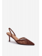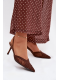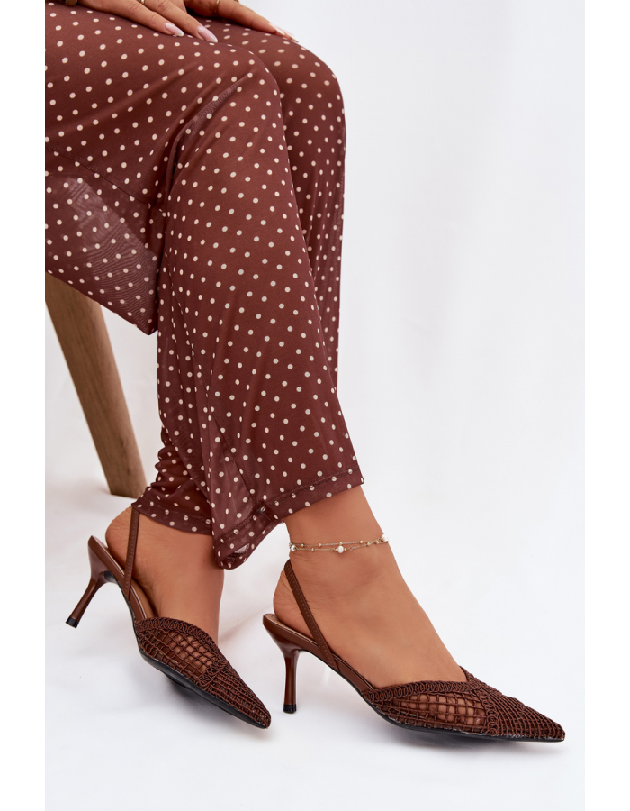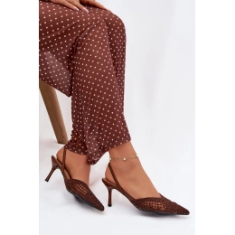 Dámské sandály Hanelis v hnědém provedení zaujmou originálním designem s pleteným svrškem, který dodává obuvi lehkost a přirozený letní vzhled. Jehlový podpatek elegantně zvýrazní siluetu a podtrhne ženský charakter modelu. Hnědá barva působí teple, nadčasově a snadno se kombinuje s přírodními i světlými tóny outfitu.