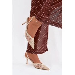 Dámské sandály Hanelis ve světle béžovém provedení zaujmou elegantním pleteným (plecioným) svrškem, který dodává obuvi lehký a letní charakter. Jehlový podpatek opticky prodlužuje nohy a podtrhuje ženskou siluetu, zatímco světlý béžový odstín působí jemně a nadčasově. Model je ideální volbou pro slavnostní i večerní příležitosti v teplejších dnech.