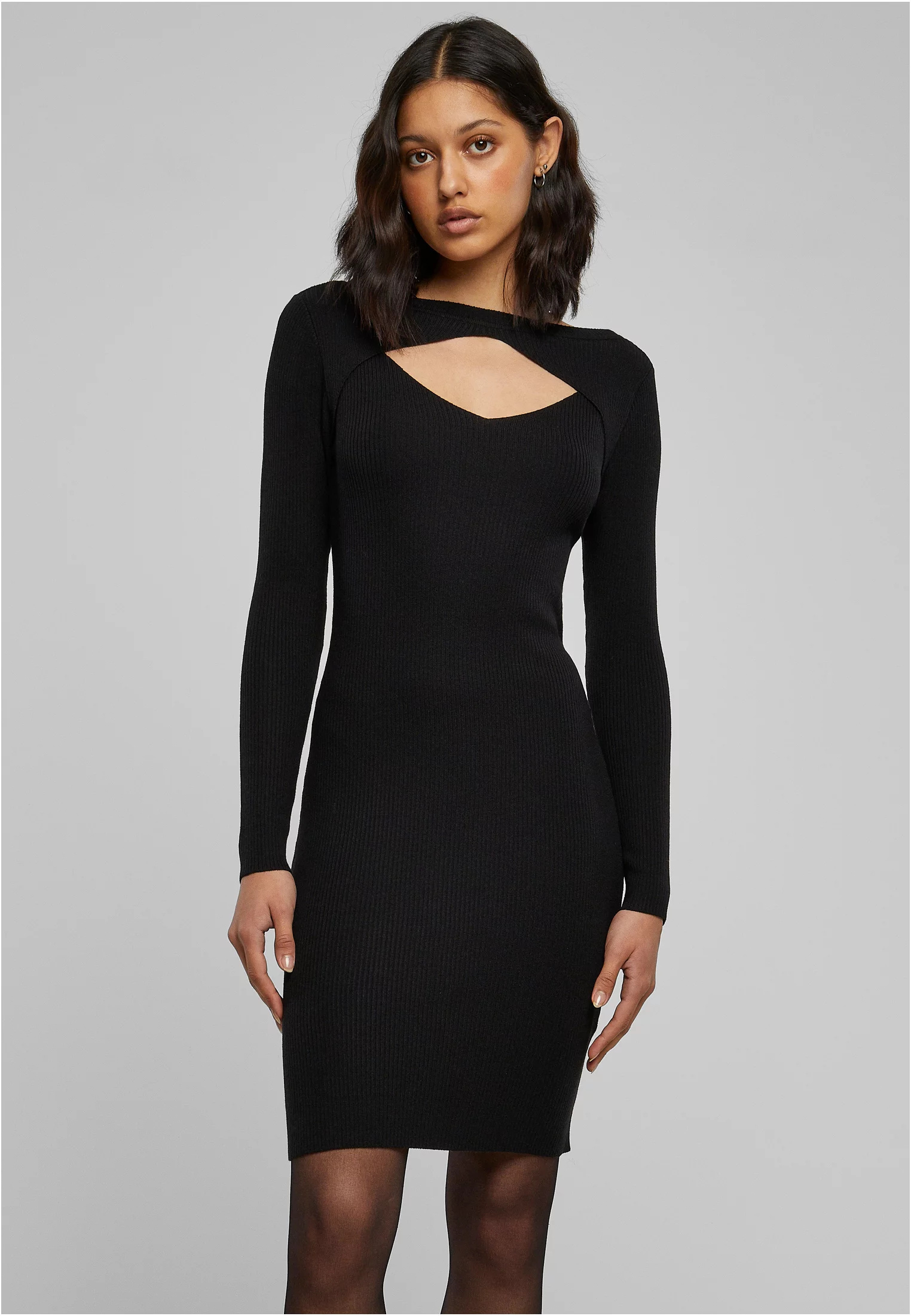 Šaty pro velký nádech – dámské vystřižené šaty extravagantně předvádějí žebrovaný úplet s přiléhavým střihem a klíčovou dírkou ve tvaru diamantu. Měkký žebrovaný úplet perfektně sedí a nabízí skvělý pohyb navzdory velmi padnoucímu střihu – dobrá volba, pokud chcete na další párty rozhýbat taneční parket.