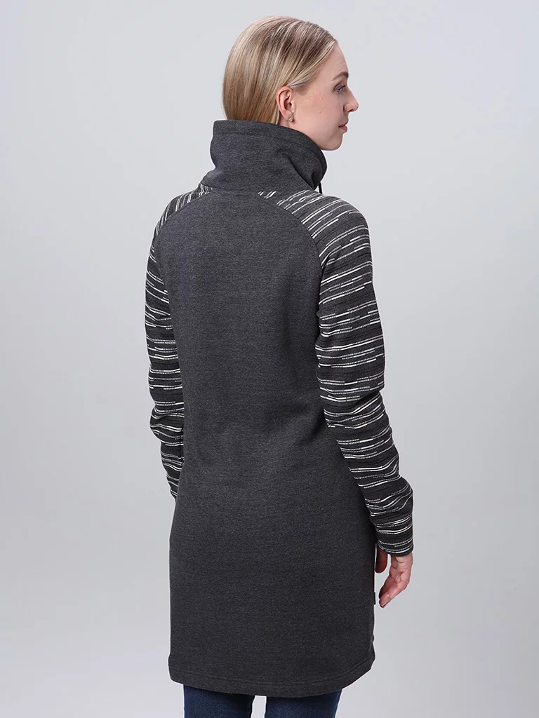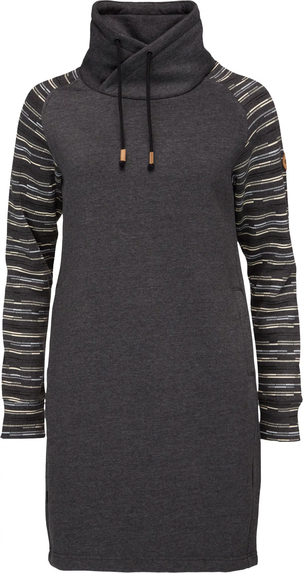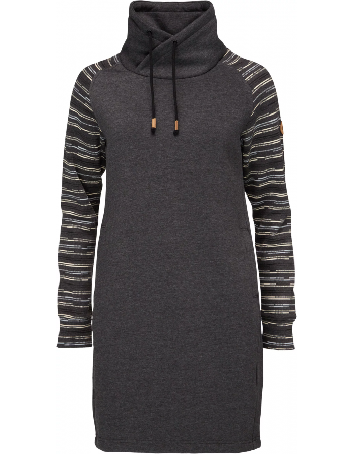 Elegance, nebo pohodlí? S dámskými mikinovými šaty Loap EBNERA získáte obojí. Materiál je kombinací bavlny a polyesteru, na těle jsou tak příjemné, zároveň si zachovávají dlouhodobě tvar. Při celodenním sezení v práci nebo ve škole oceníte nízkou mačkavost. Vyšší gramáž se postará o komfort i za chladnějších dnů a praktický límec, díky němuž vám nikdy nebude táhnout na krk, si doslova zamilujete. Šaty jsou ušity v klasickém střihu s raglánovými rukávy a spodním okrajem bez stahování. Vzor na rukávech jim přidává na originalitě, dvě kapsy na bocích podtrhnou sportovní vzhled.Pohodlné a hřejivé. Klasický střih s raglánovými rukávy. Vysoký límec se stahováním na tkaničky. Spodní okraj bez stahování. 2 vnější kapsy. Ve velikostech XS–XL