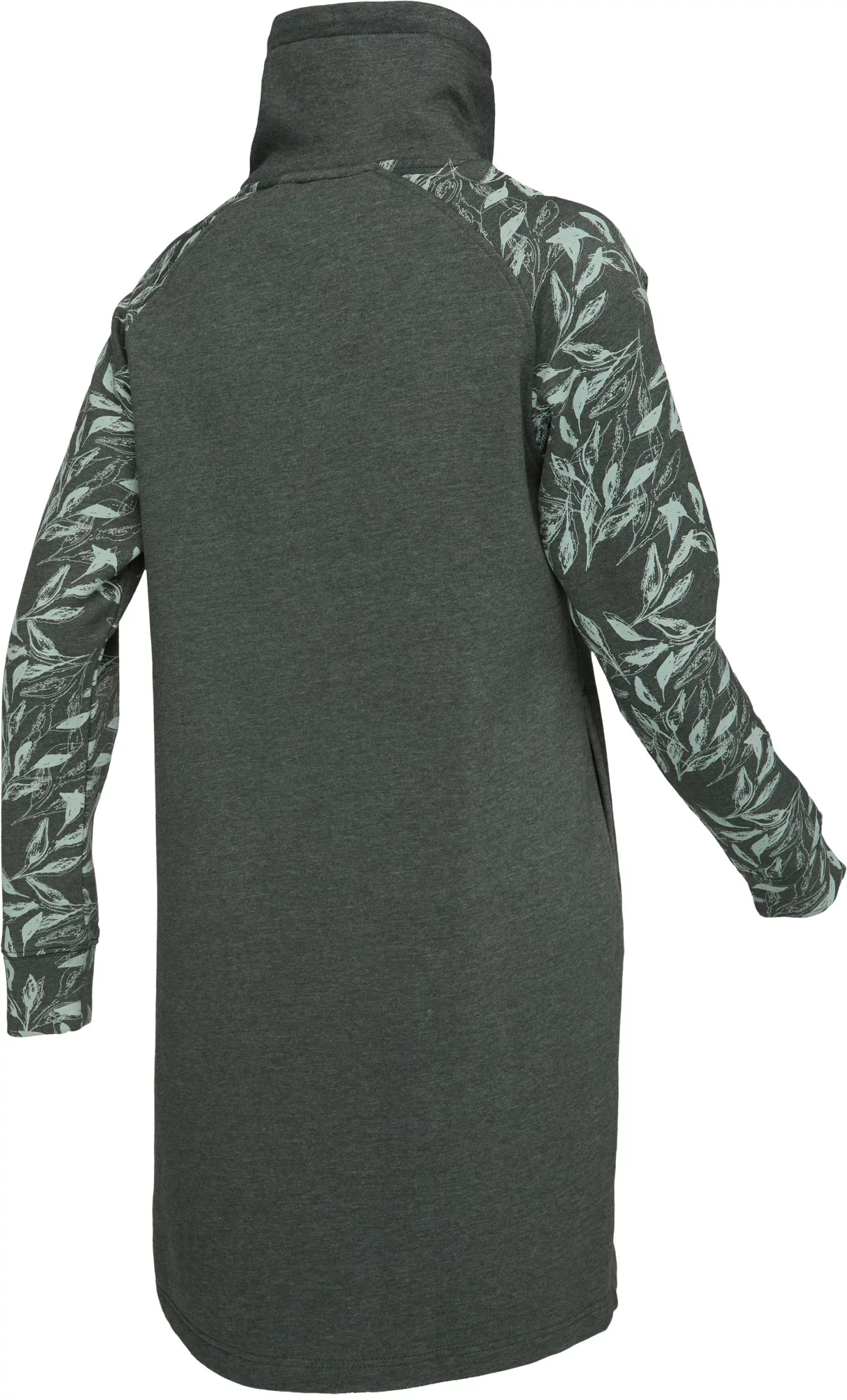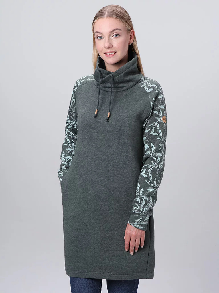Elegance, nebo pohodlí? S dámskými mikinovými šaty Loap EBNERA získáte obojí. Materiál je kombinací bavlny a polyesteru, na těle jsou tak příjemné, zároveň si zachovávají dlouhodobě tvar. Při celodenním sezení v práci nebo ve škole oceníte nízkou mačkavost. Vyšší gramáž se postará o komfort i za chladnějších dnů a praktický límec, díky němuž vám nikdy nebude táhnout na krk, si doslova zamilujete. Šaty jsou ušity v klasickém střihu s raglánovými rukávy a spodním okrajem bez stahování. Vzor na rukávech jim přidává na originalitě, dvě kapsy na bocích podtrhnou sportovní vzhled.Pohodlné a hřejivé. Klasický střih s raglánovými rukávy. Vysoký límec se stahováním na tkaničky. Spodní okraj bez stahování. 2 vnější kapsy. Ve velikostech XS–XL