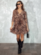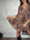 Šaty s leopardím vzorem, které do stylizace vnášejí trochu dravosti a elegance. Měkký, splývavý materiál zajišťuje pohodlí a volnost pohybu, zatímco plisovaná sukně dodává lehkost každému kroku. Ideální na večerní výlety a setkání s přáteli, kde chceš přitáhnout pohledy a cítit se výjimečně. Jemný pas zdůrazňuje siluetu a decentní výstřih dodává ženskost.
