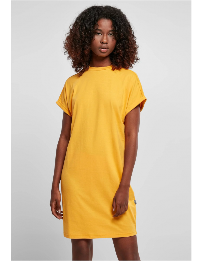 Atraktivní minišaty se svěžím letním vzhledem, chytrými detaily a neobvyklým znakem na zádech s logem Urban Classics přecházejícím přes ramena a s přechodovým vzhledem v duhových barvách. Látka šatů je bavlna šetrná k pokožce a má odpovídající barvu. Akcenty dodává pohodlný volný střih, mírně zvýšený žebrovaný výstřih a zkrácené krátké rukávy s manžetami. Díky sedlu vzadu je zajištěno optimální padnutí šatů.