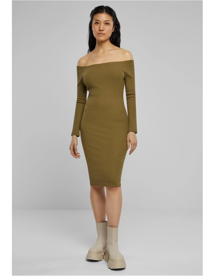 Tyto šaty s dlouhým rukávem, navržené s límcem Carmen mimo rameno, nabízejí úspěšný styl. Úzký střih padne jako druhá kůže díky použité látce z bavlny a elastanu. Šaty sahají ke kolenům.