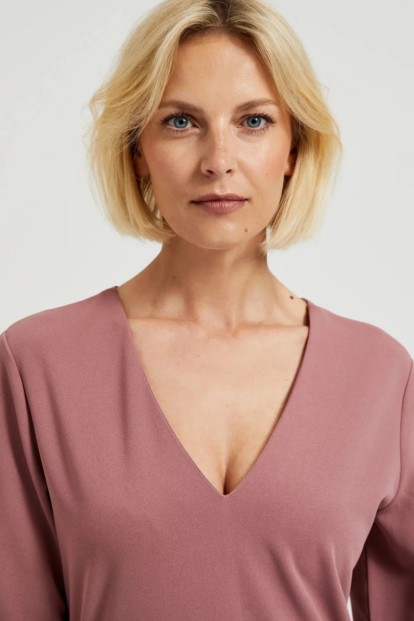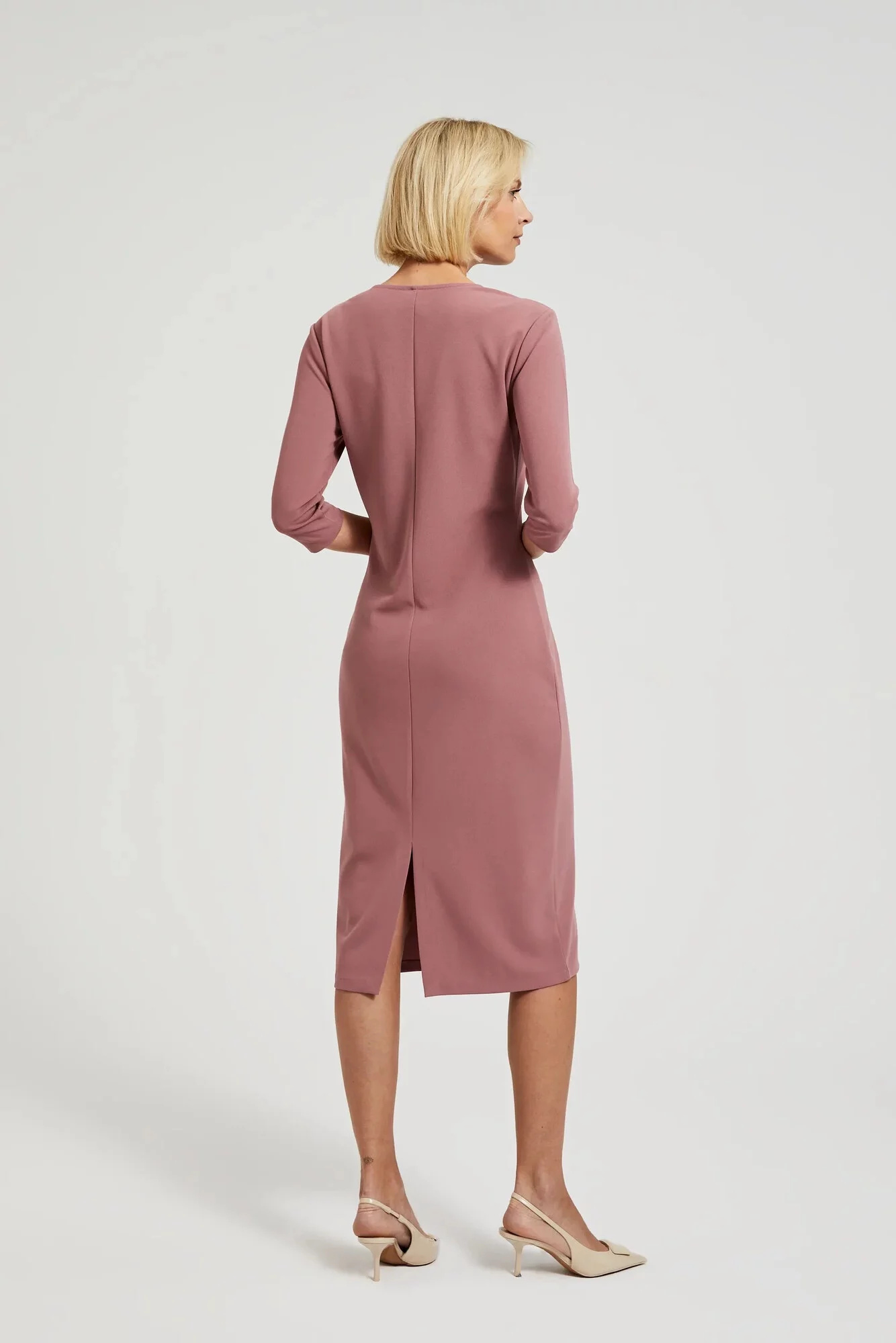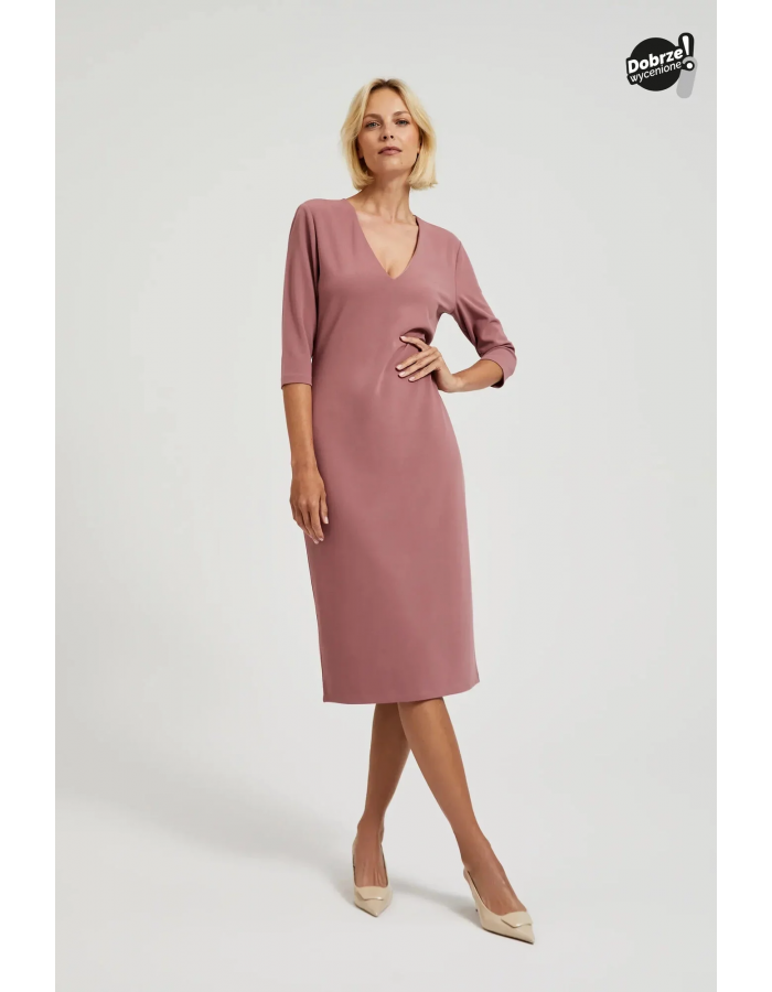 96%POLYESTER, 4%ELASTAN Elegantní šaty ve fialové barvě s jemným růžovým akcentem. Bez vzoru, hladká, vyrobená z vysoce kvalitního polyesteru. Díky přiléhavému střihu zdůrazní přednosti postavy a projmutá linie dodává šmrnc a eleganci. Ideální na každou příležitost - jak do práce, tak na speciální akce. Díky svému klasickému střihu se skvěle hodí na každodenní nošení. Výstřih do V (V neck) dodává jemně ženský půvab. Šaty v délce do poloviny lýtek se skvěle hodí jak k botám na podpatku, tak ke sportovní obuvi. Ideální nabídka pro ženy, které si cení pohodlí a elegance zároveň.