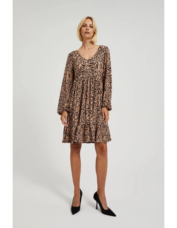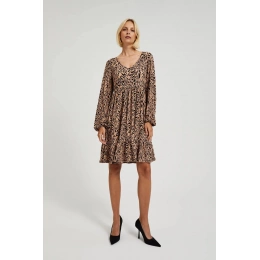 Dámské šaty se zvířecím vzorem MOODO - hnědé Velikost: 38