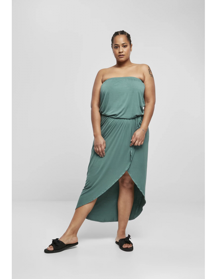 Římské bohyně v teniskách? Kde to můžete získat? Dámské Viscose Bandeau Dress od URBAN CLASSICS ve vás probudí bohyni, protože proč nespojit pohodu s romantikou? Šaty s asymetrickým střihem z měkké žerzejové látky obepnou vaši postavu s ležérním střihem a šikovným nařasením na boku. Na den ideální šaty pro volný čas, večer na vysokých podpatcích v úchvatném stylu.