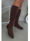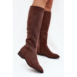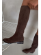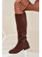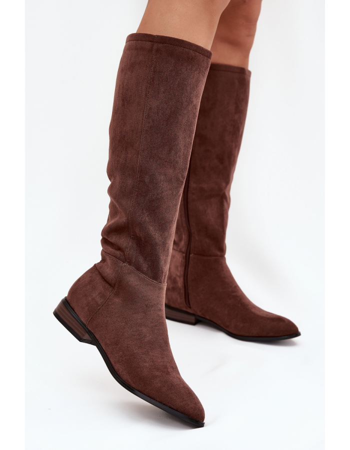 Stylové hnědé kozačky Eelin z eko-semiše na nízkém podpatku kombinují pohodlí s nadčasovým designem. Měkký materiál zajišťuje komfort po celý den, zatímco nízký podpatek poskytuje stabilitu při chůzi. Ideální volba pro ženy, které chtějí elegantní a pohodlné kozačky pro každodenní nošení.