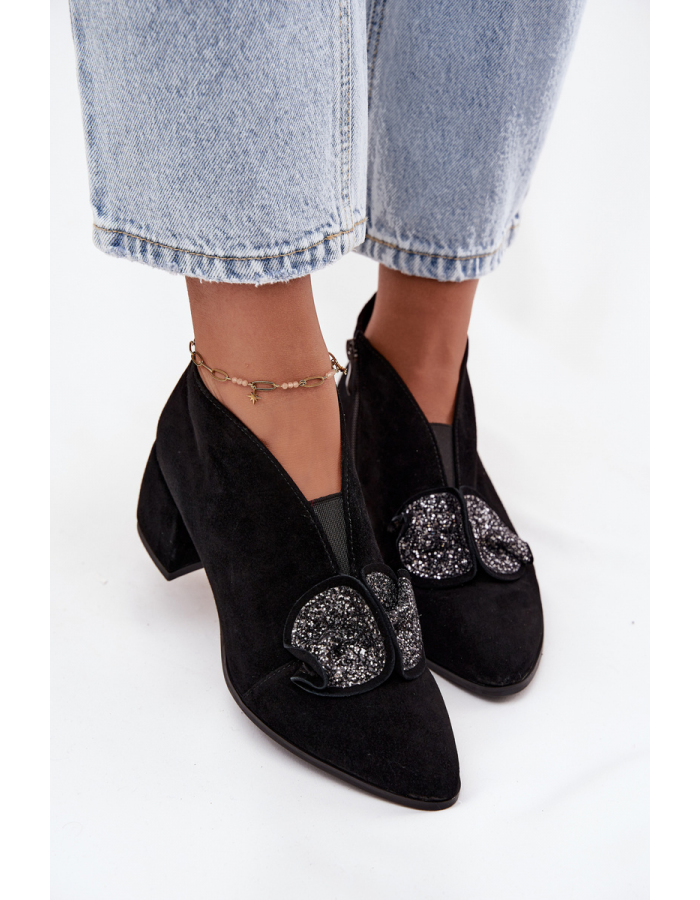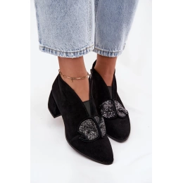 Stylové dámské botky D&A vyrobené z pravé semišové kůže kombinují eleganci s pohodlím pro každodenní i formální nošení. Model je na stabilním sloupkovém podpatku, s zaoblenou špičkou a bočním zipem pro snadné obouvání. Boty zdobí jemný dekorativní prvek, který dodává botám módní a výrazný charakter.