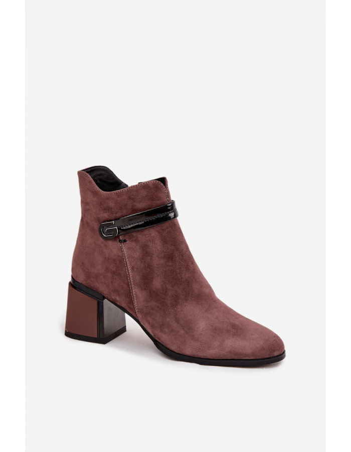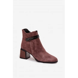 Boty jsou vyrobené z kvalitní přírodní semišové kůže, která je měkká, prodyšná a odolná. Sloupkový podpatek poskytuje stabilitu a pohodlí při celodenním nošení. Zateplený vnitřek udržuje nohy v teple, zatímco ozdobný pásek na svršku dodává botám osobitý charakter. Boční zip umožňuje snadné obouvání a přizpůsobení boty noze. Hnědý odstín je univerzální a elegantní, vhodný pro různé outfity.