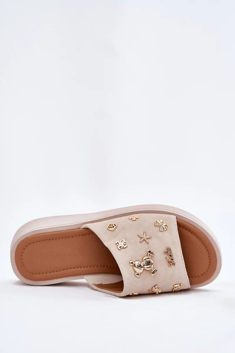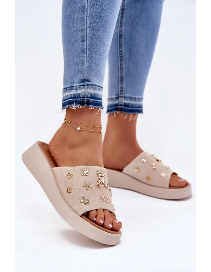 Dámské pantofle Vinceza v univerzální béžové barvě jsou elegantní a pohodlnou volbou pro teplé dny. Měkký semišový svršek působí kvalitně a příjemně na dotek, zatímco ozdobné připínky dodávají obuvi stylový a originální detail. Béžové provedení se snadno kombinuje s různými outfity – od casual po elegantní.