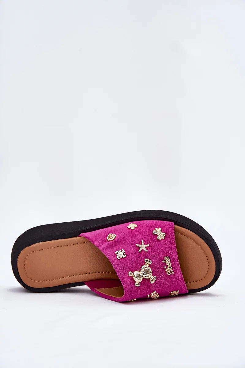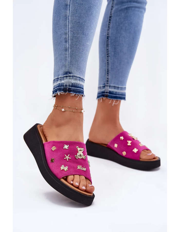 Dámské pantofle Vinceza v výrazném fuchsiovém provedení spojují pohodlí s módním a stylovým designem. Měkký semišový svršek působí kvalitně a příjemně na dotek, zatímco ozdobné připínky dodávají obuvi originální a ženský vzhled. Fuchsiová barva je energická a trendy, skvěle doplní letní i volnočasové outfity.