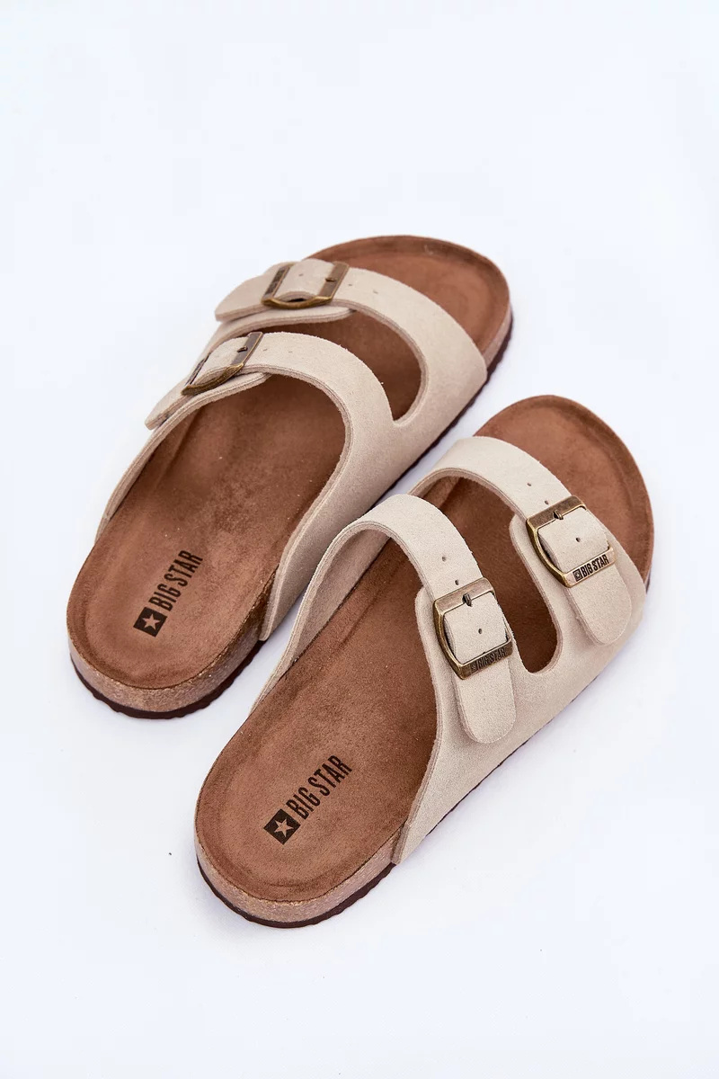 Dopřejte si pohodlí a styl v jednom – dámské semišové pantofle Big Star v elegantním béžovém odstínu vás okouzlí svou jednoduchostí a funkčností. Dva široké pásky s nastavitelnými kovovými přezkami umožňují přizpůsobení šířky podle potřeby, zatímco ergonomicky tvarovaná stélka poskytuje oporu chodidlu při každém kroku.