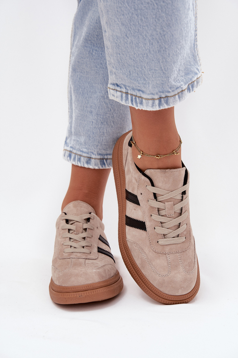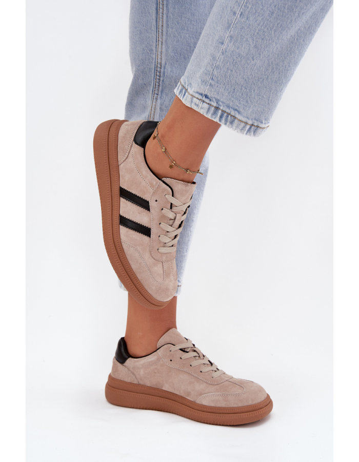 Dámské semišové sneakers Elivienne na platformě v béžové barvě jsou pohodlným modelem pro každodenní nošení, který kombinuje sportovní styl s jemně elegantním vzhledem. Semišový povrch působí měkce a vkusně, díky čemuž boty snadno sladíte nejen s džínami, ale i s šaty nebo sukní. Platforma dodá moderní siluetu, opticky prodlouží nohy a zároveň nabídne stabilní došlap při chůzi ve městě nebo na cestách. Béžový odstín je nadčasový, velmi dobře kombinovatelný a skvěle ladí s neutrálními i pastelovými barvami.