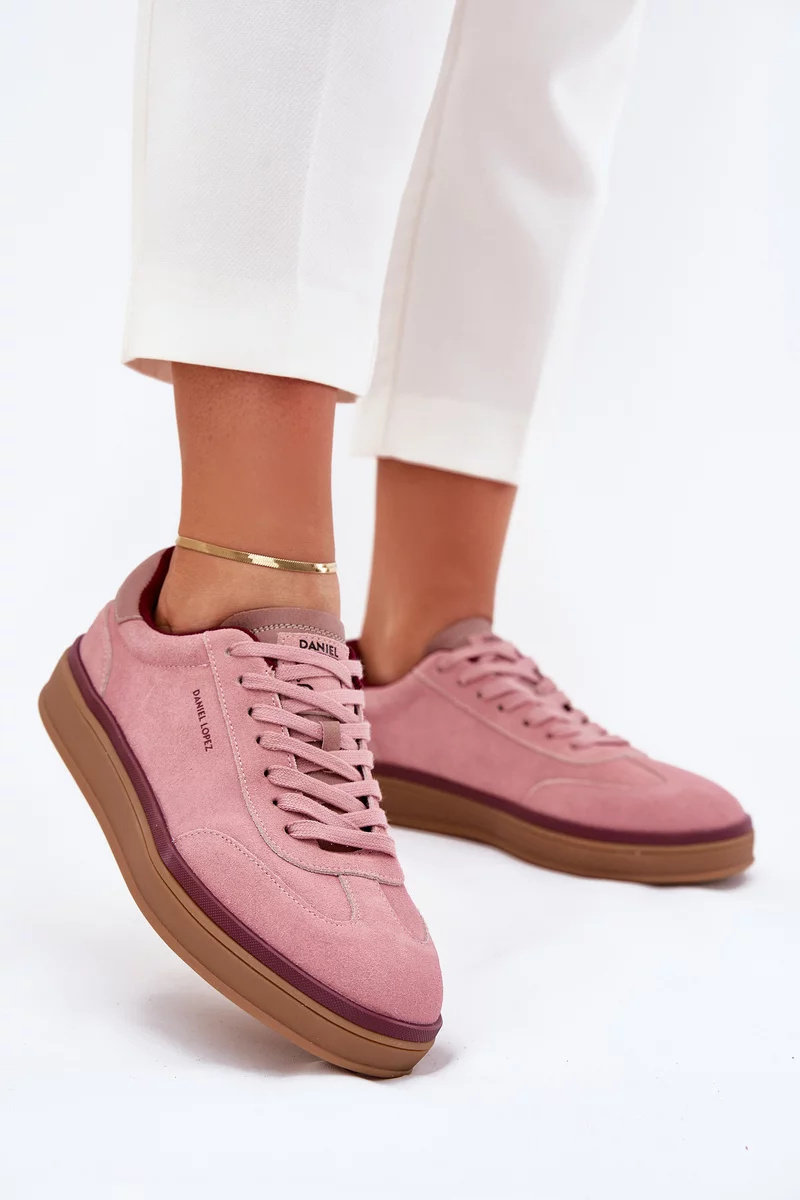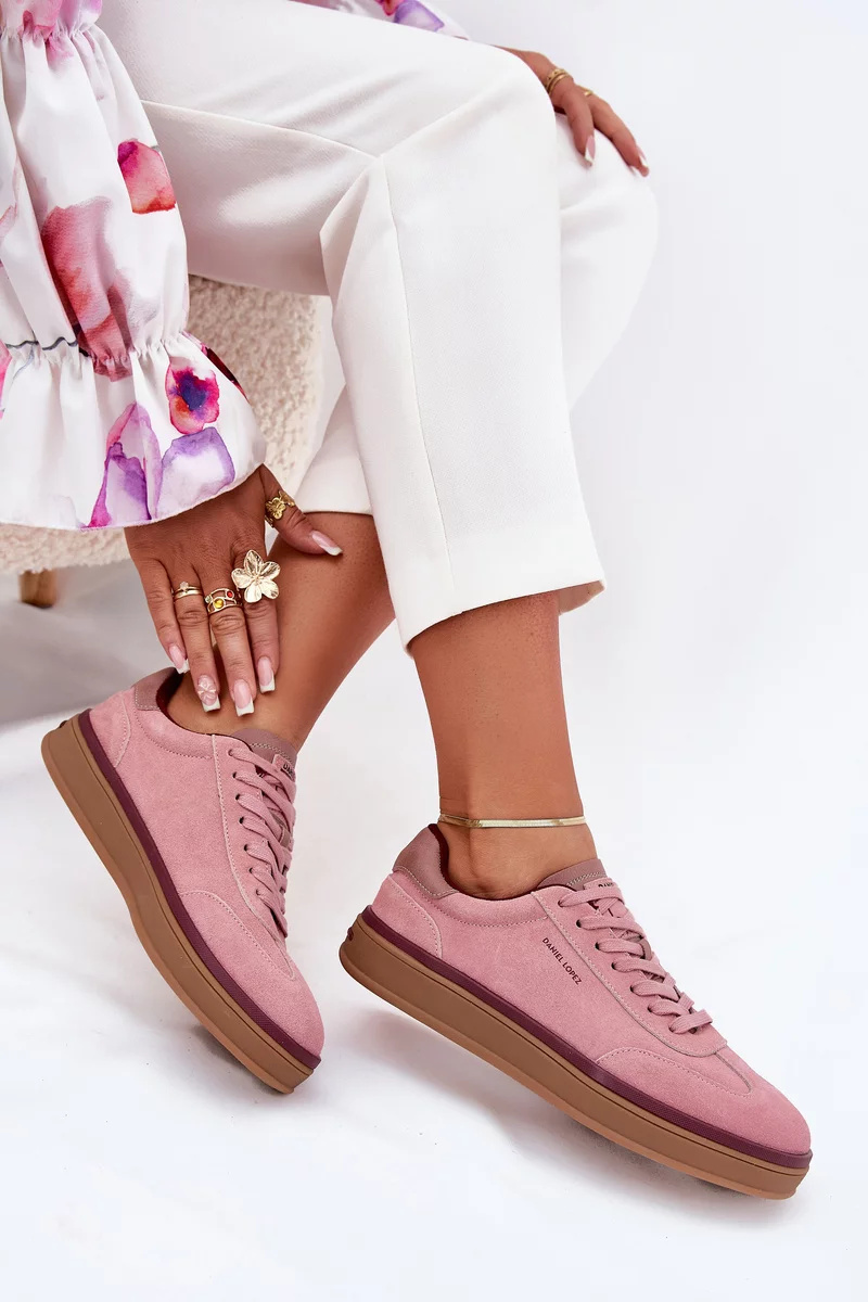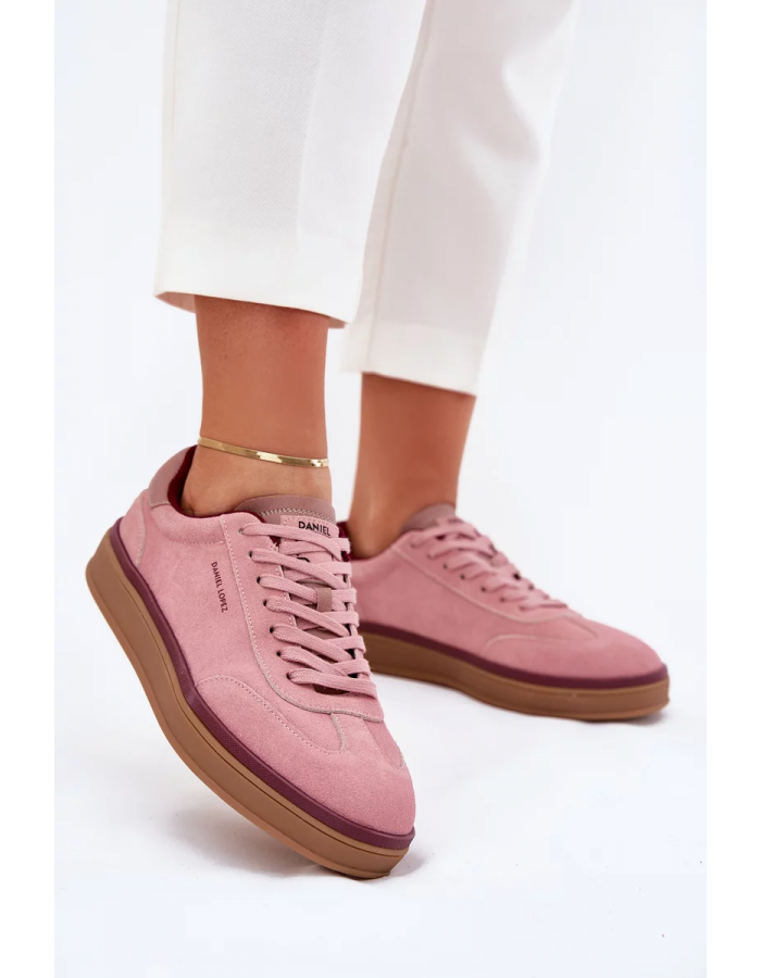 Dámské sneakersy Daniel Lopez Just Dare v růžovém provedení působí jemně, žensky a moderně. Semišový svršek z přírodní kůže dodává obuvi elegantní strukturu a prémiový vzhled, zatímco decentní růžová barva vnáší do outfitu svěží barevný akcent. Pohodlný střih zajišťuje komfort při každodenním nošení ve městě i ve volném čase.