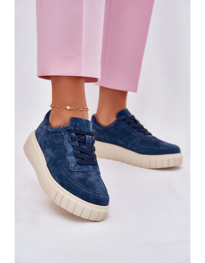 Dámské sneakersy Rilwena v tmavě modrém provedení představují elegantní a moderní volbu pro každodenní nošení. Semišový svršek dodává obuvi jemnou strukturu a prémiový vzhled, zatímco platformová podešev zajišťuje stabilní došlap a komfort při chůzi. Tmavě modrá barva působí nadčasově a snadno se kombinuje s různými outfity.