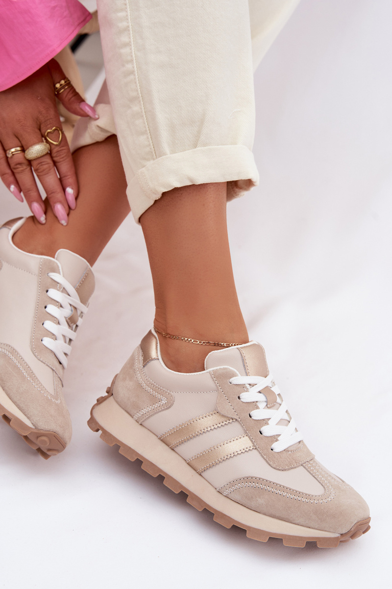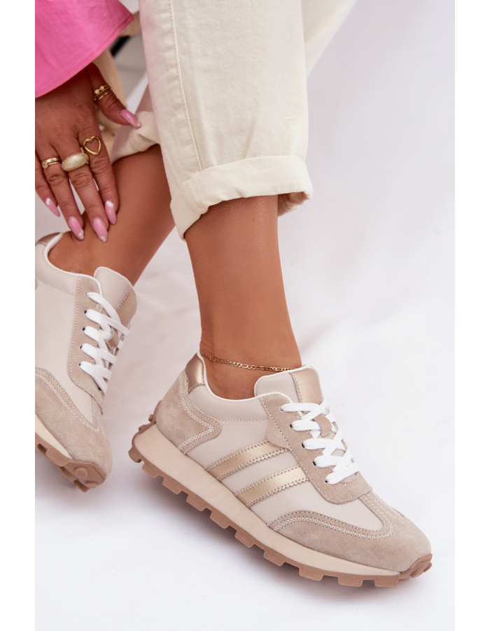 Dámské sneakersy S.Barski v tmavě béžovém provedení představují moderní městskou obuv s pohodlnou platformovou podešví. Semišový svršek působí elegantně a jemně, zatímco neutrální tmavě béžový odstín zajišťuje nadčasový vzhled a snadnou kombinovatelnost. Platforma dodává modelu stylový charakter a zároveň poskytuje komfort při každodenním nošení.