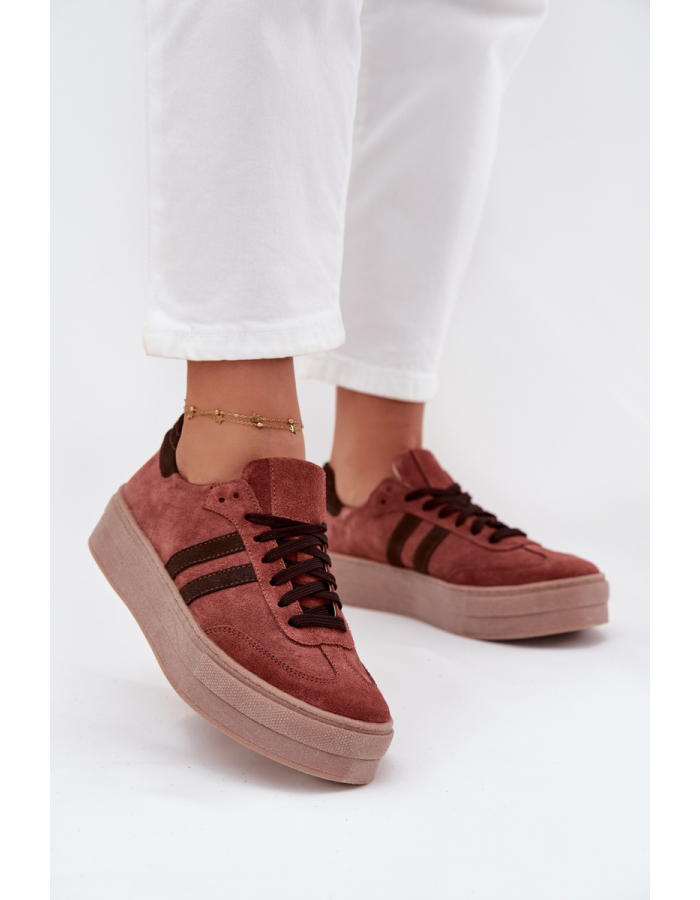 Dámské sneakersy Zazoo v hnědém provedení zaujmou čistým designem a moderní platformovou podešví. Semišový vzhled dodává obuvi elegantní a zároveň ležérní charakter, díky kterému se snadno kombinuje s každodenními outfity. Platforma poskytuje stabilní došlap a pohodlí při celodenním nošení.