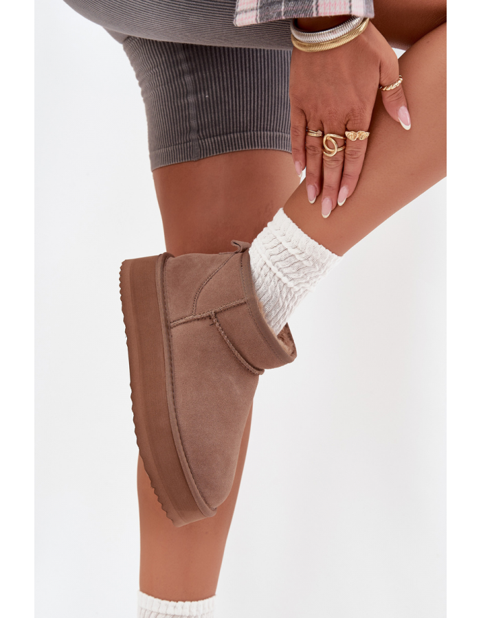 Béžové dámské sněhule Vinceza z kvalitního semiše s měkkým zateplením uvnitř, které udržuje nohy v teple i v chladném počasí. Stabilní platforma izoluje chodidlo od studeného povrchu a poskytuje pohodlný a jistý krok. Nízký střih sahá kolem kotníku, což usnadňuje nazouvání a každodenní nošení.