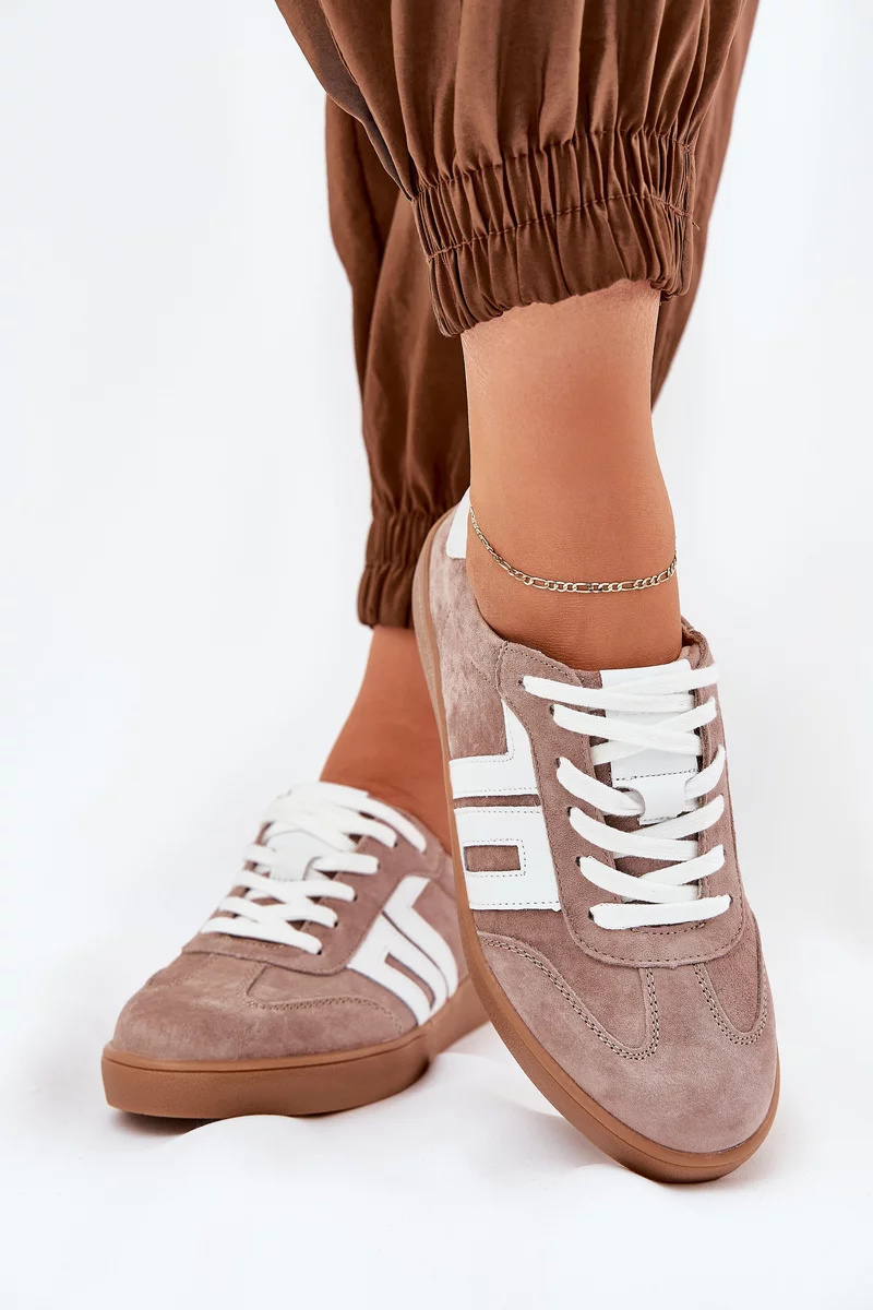 Béžové semišové sneakersy skvěle doplní outfit v přírodních tónech, jako je krémová, hnědá, bílá nebo světlá džínovina.