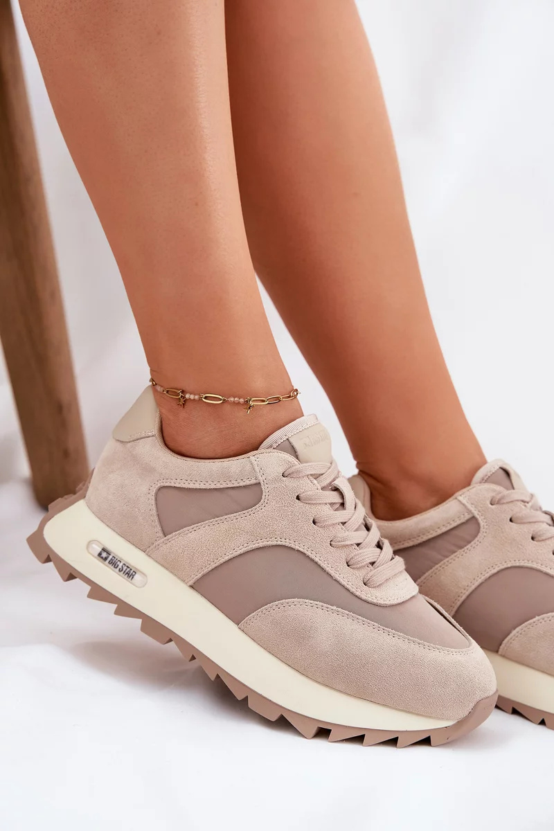 Moderní vzhled, maximální pohodlí a kvalitní zpracování – to jsou dámské tenisky Big Star v neutrálním béžovém odstínu. Vyrobené ze semišového materiálu a postavené na robustní platformě, která dodává nejen výšku, ale i městský šmrnc. Díky inovativní technologii HI-POLY SYSTEM se můžeš spolehnout na vysoký komfort a měkký došlap během celého dne.