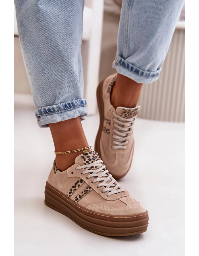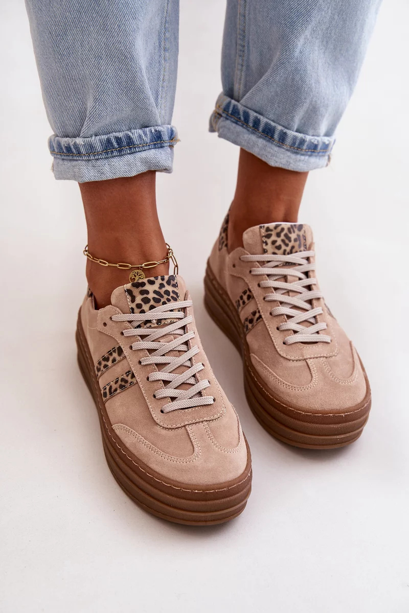 Dámské tenisky Zazoo v růžovém provedení s leopardím vzorem představují výrazný a zároveň stylový model pro každodenní nošení. Semišový svršek z přírodní kůže dodává obuvi elegantní strukturu a prémiový vzhled, zatímco leopardí motiv přináší módní akcent. Platformová podešev zajišťuje stabilní došlap a pohodlí při chůzi, a zároveň podtrhuje moderní siluetu tohoto modelu.