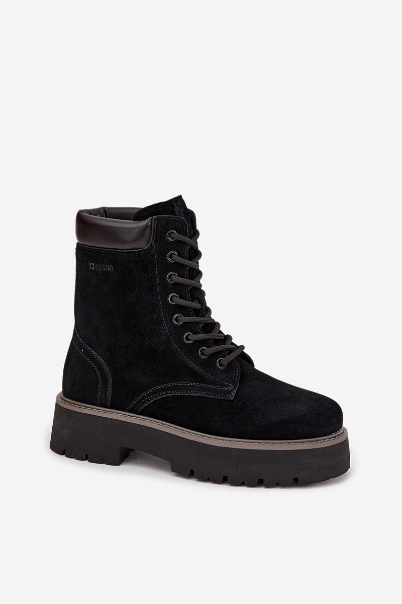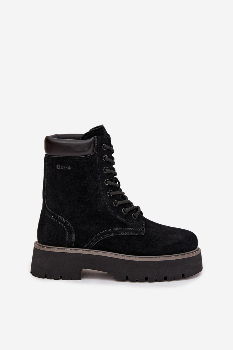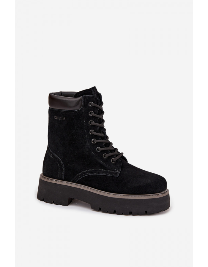 Dámské workery Big Star v černém provedení spojují nadčasový design s pohodlím pro každodenní nošení. Vyrobené z kvalitního přírodního semiše, doplněné klasickým šněrováním, které umožňuje dokonalé přizpůsobení noze. Pevná podrážka s trakčním vzorem zajišťuje stabilitu a jistý krok i v horších podmínkách. Díky univerzálnímu černému odstínu se snadno kombinují s každodenními i ležérními outfity.