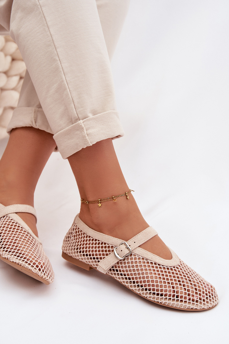 Světle béžové síťované baleríny krásně doplní šaty, sukně i kalhoty v neutrálních nebo pastelových tónech a podtrhnou lehkost outfitu.