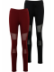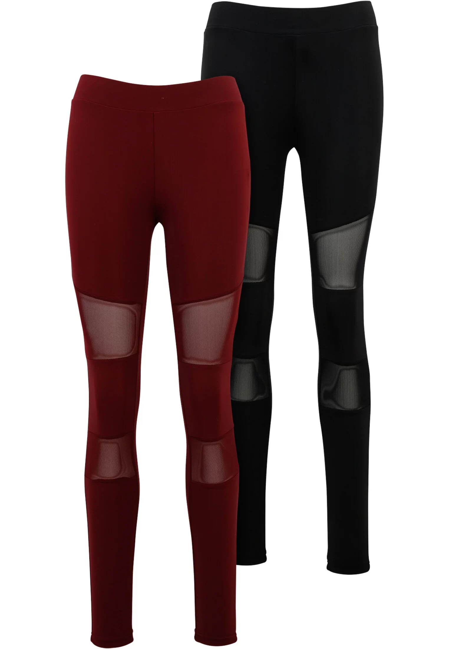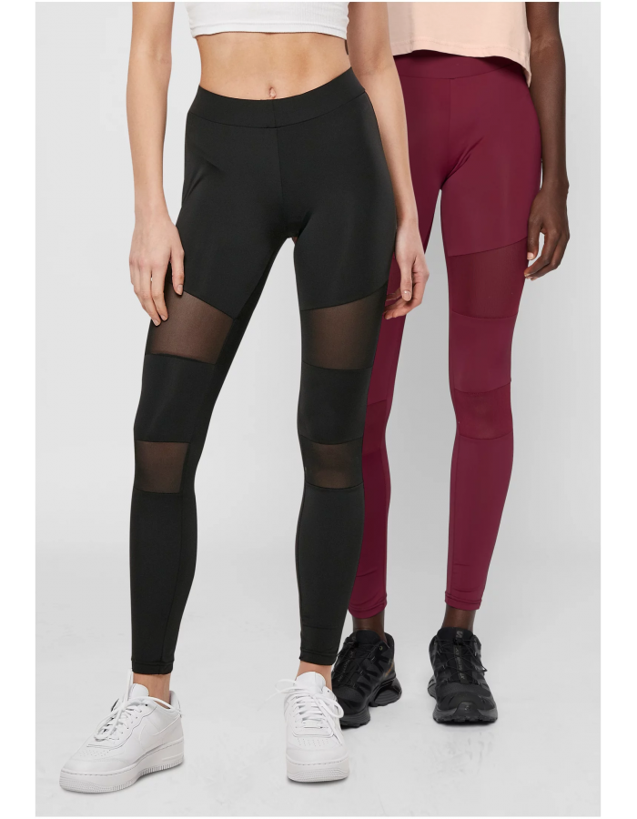 Tento set obsahuje dva stylové legíny, ideální pro moderní a aktivní ženu. Jeden pár je v černé barvě, druhý v syté vínové. Oba legíny jsou navrženy s průhlednými síťovanými panely na kolenou, které nejen přidávají zajímavý vizuální prvek, ale také zajišťují lepší prodyšnost během pohybu. Vyrobené z elastického a pohodlného materiálu, tyto legíny poskytují vynikající volnost pohybu a pohodlí, což je činí ideálními jak pro sportovní aktivity, tak pro každodenní nošení.