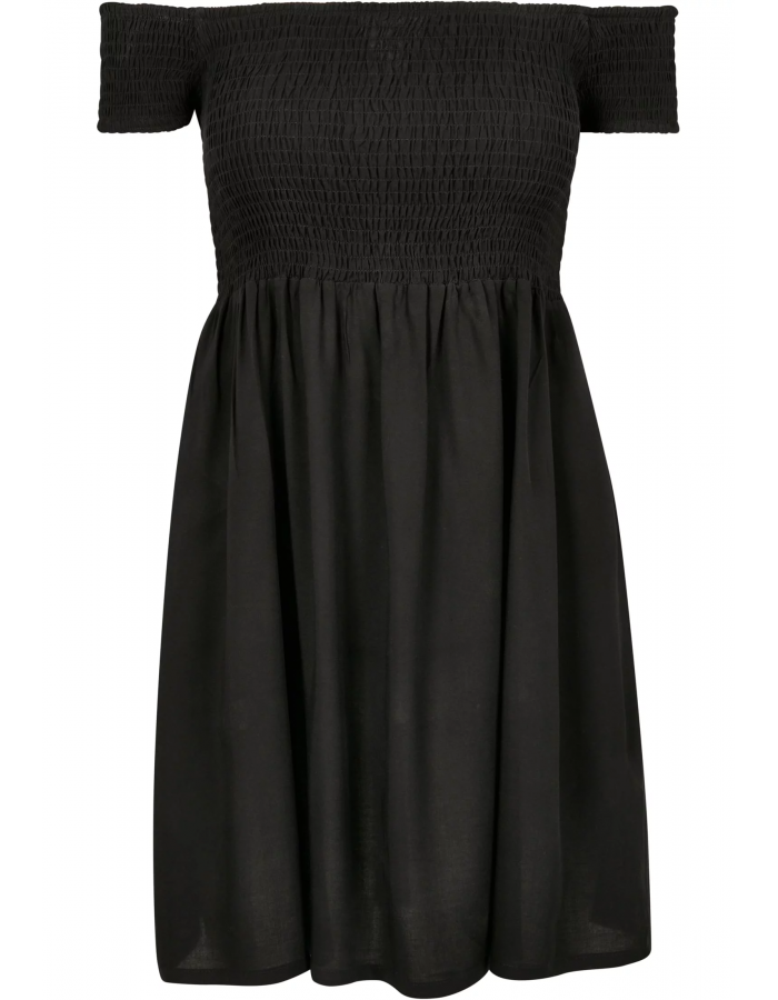 Buďte dobře oblečeni a ponechte si dostatek prostoru pro hřejivé sluneční paprsky pro pokožku. Kombinace funguje, stačí se podívat na tyto skromné šaty bez ramínek, které potěší rafinovanými detaily. Límec Carmen elegantně padne přes ruce. Pro zvláštní vzhled je vršek navíc ztmavený a noblesně nařasený. Ležérní šaty končí vysoko nad koleny, takže se nebudete muset vzdát svého sexy vzhledu.