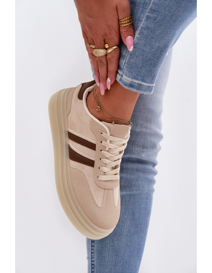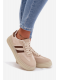 Béžové sneakersy na platformě se skvěle hodí k džínům, kalhotám i šatům v přírodních a světlých tónech a vytvoří moderní outfit.