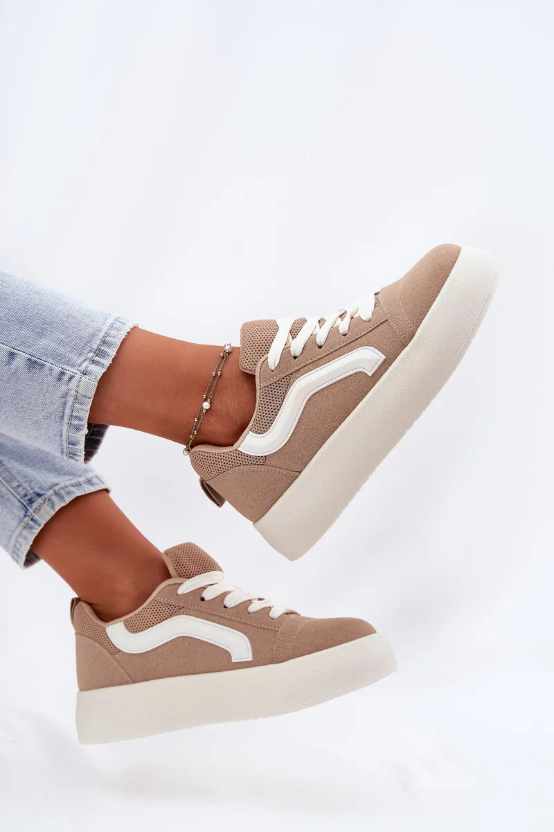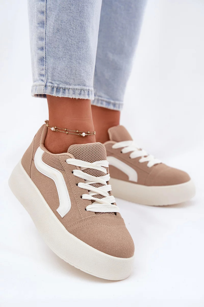 Khaki sneakersy na platformě krásně doplní outfit v přírodních tónech – například béžovou, hnědou nebo černou – a podtrhnou ležérní městský styl.