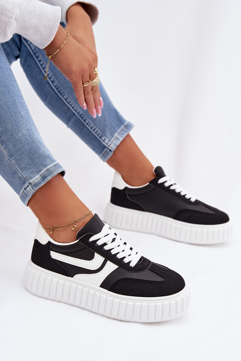 Černé sneakersy na platformě se skvěle hodí k džínům, legínám i šatům a vytvoří moderní a pohodlný outfit.