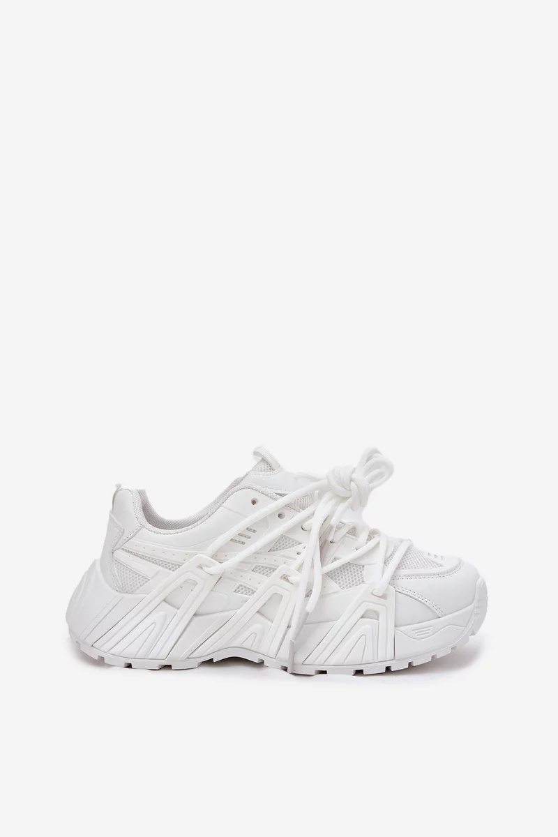 Bílé sneakersy s dvojitým šněrováním skvěle doplní minimalistické outfity a nechají vyniknout zajímavý detail šněrování.