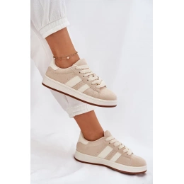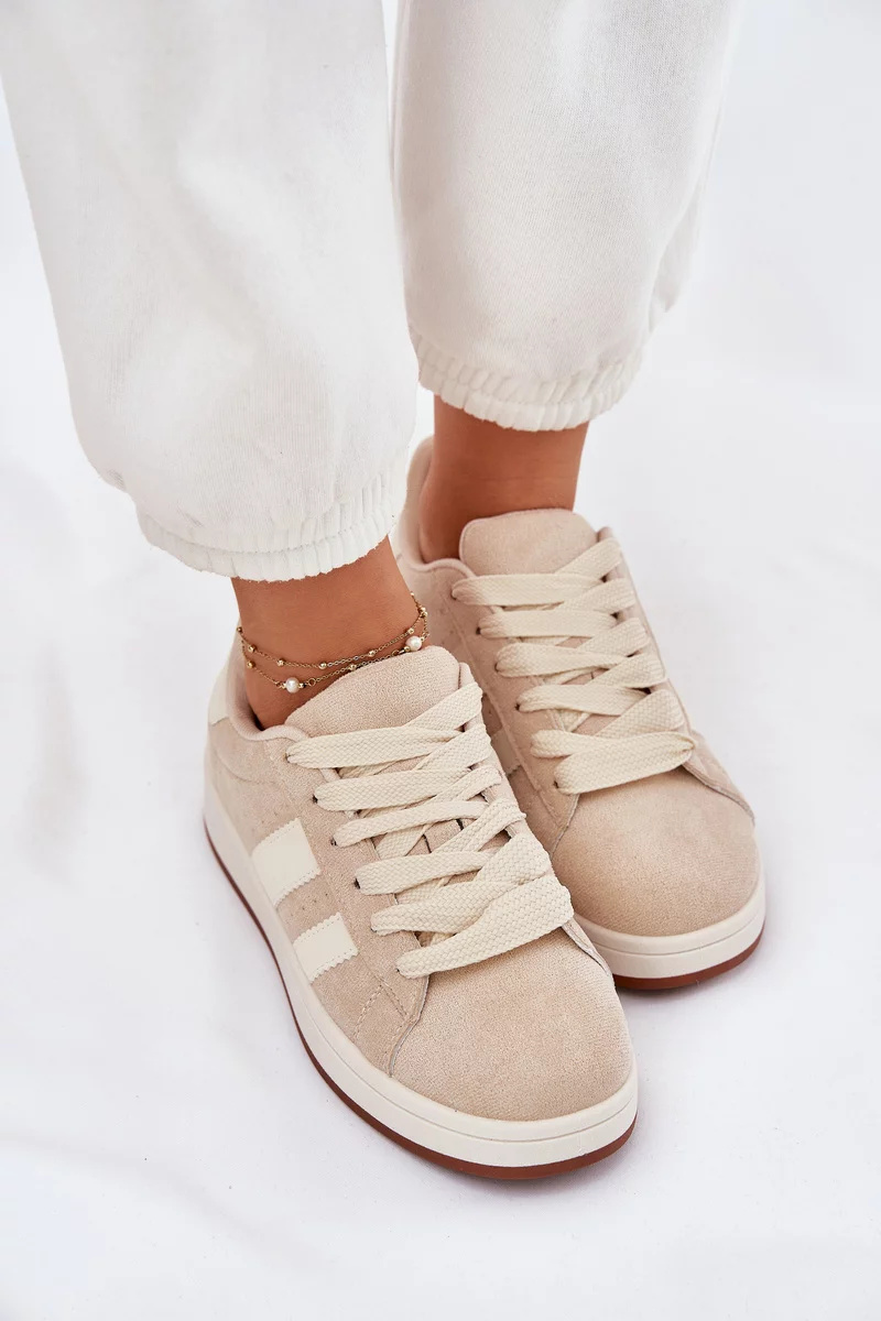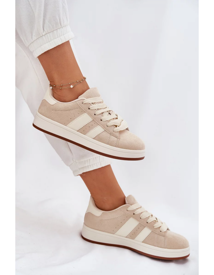 Béžové sneakersy z eko semiše kombinujte s outfity v přírodních tónech a jednoduchých střizích pro čistý a harmonický vzhled.