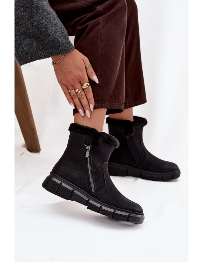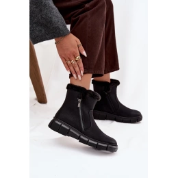 Černé dámské sněhule Briselle s pohodlnou platformou a měkkým vnitřním zateplením. Kožešinový lem poskytuje teplo a komfort během chladných dní. Boční zip usnadňuje nazouvání a robustní podrážka zajišťuje stabilní chůzi. Stylový a univerzální design vhodný pro zimní městské i volnočasové outfity.