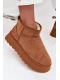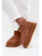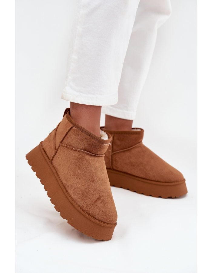 Camelové dámské sněhule Celyra vyrobené z ekologického semiše. Mají masivní platformu (cca 4 cm), která izoluje nohy od chladné země, a uvnitř jsou zatepleny měkkým umělým kožíškem pro pohodlí a teplo. Svršek sahá přibližně do výšky 10 cm kolem kotníku.