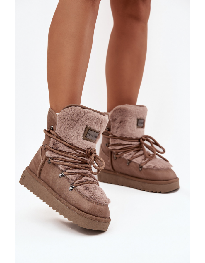 Béžové dámské sněhule D.Franklin s pohodlnou platformou a měkkým vnitřním zateplením s kožešinou, které udržuje nohy v teple během chladných dní. Snadno nazouvací střih a robustní podrážka zajišťují stabilní a pohodlnou chůzi. Stylový a univerzální design vhodný pro zimní městské i volnočasové outfity.