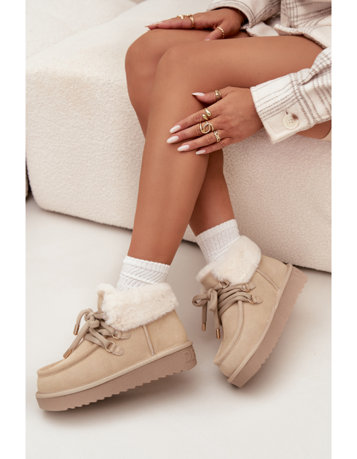 Světle béžové dámské sněhule D.Franklin z kvalitního přírodního semiše s měkkým vnitřním zateplením, které udržuje nohy v teple během chladných dní. Snadno nazouvací střih a robustní podrážka zajišťují pohodlnou a stabilní chůzi. Elegantní a univerzální design vhodný pro zimní městské i volnočasové outfity.