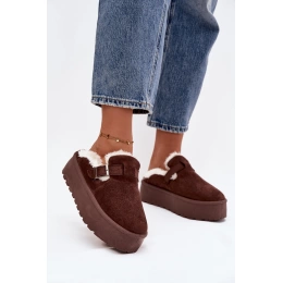 Čokoládové dámské sněhule Jessina s pohodlnou platformou a dekorativní sponou. Boty mají měkké vnitřní zateplení a kožešinový lem, který poskytuje teplo během chladných dní. Boční zip usnadňuje nazouvání a pohodlné nošení. Stylový a univerzální design vhodný pro zimní městské i volnočasové outfity.