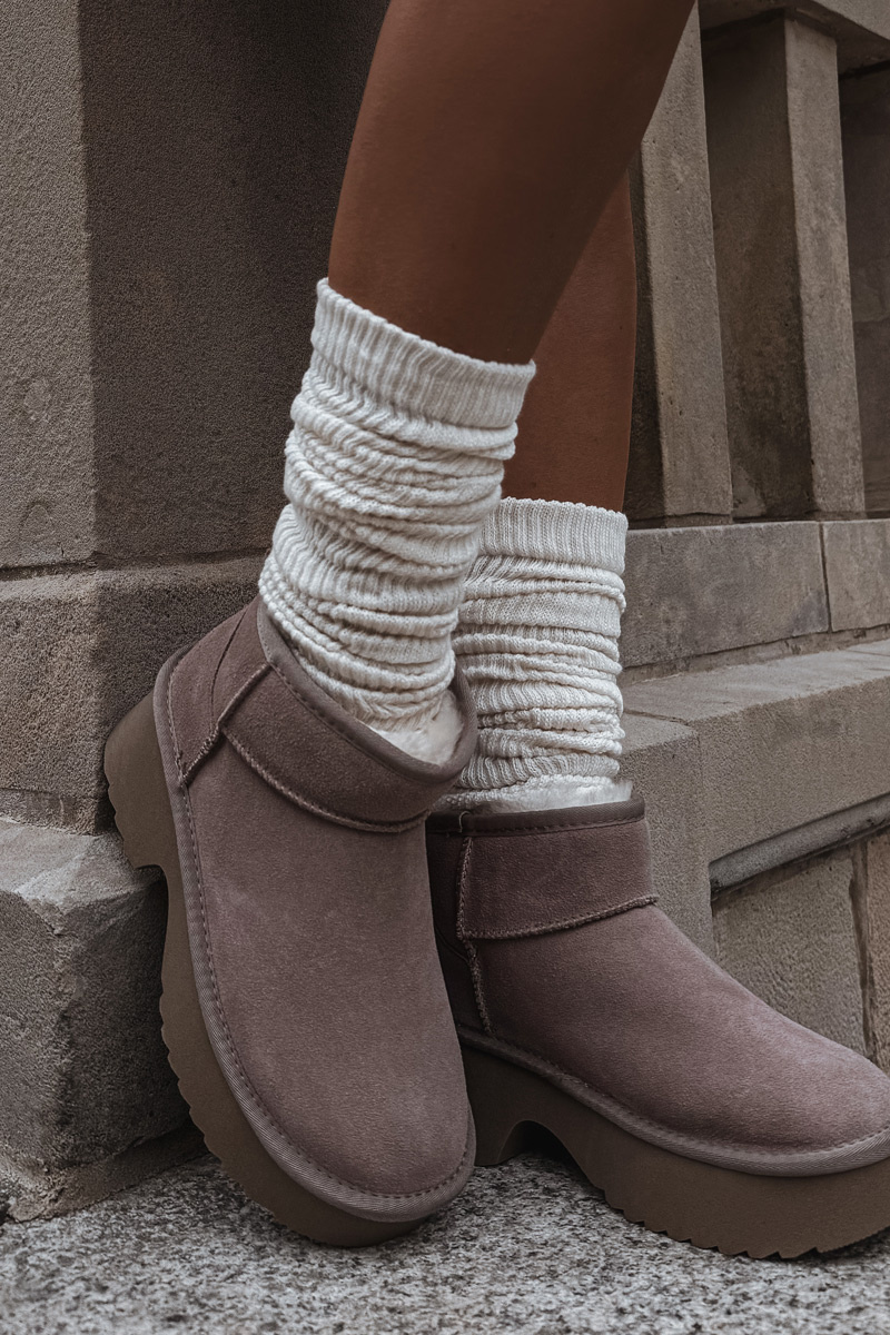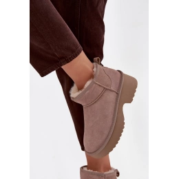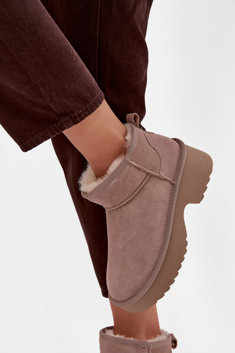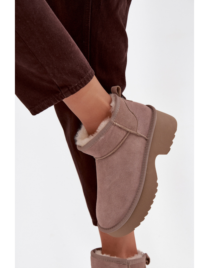 Khaki dámské sněhule Milora z kvalitního přírodního semiše s měkkým vnitřním zateplením a kožešinou, která udržuje nohy v teple během chladných dní. Boty mají snadno nazouvací střih a robustní podrážku pro stabilní chůzi. Elegantní a univerzální design vhodný pro zimní městské i volnočasové outfity.