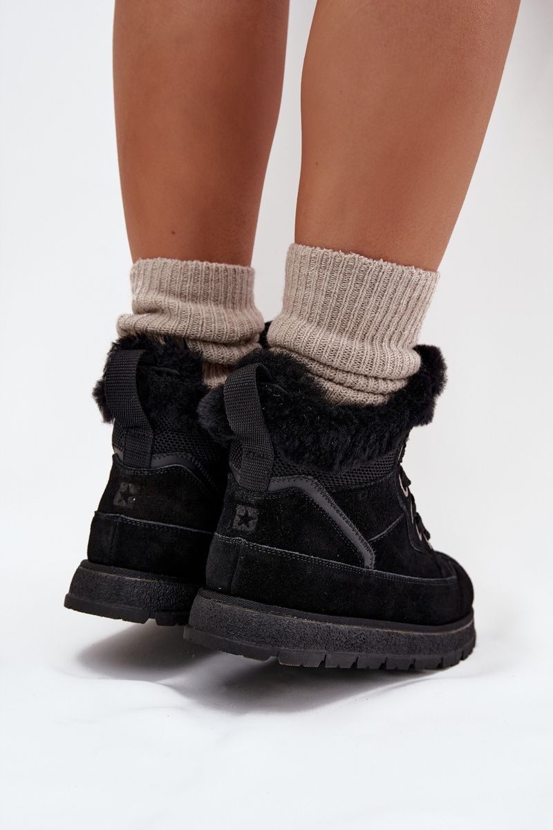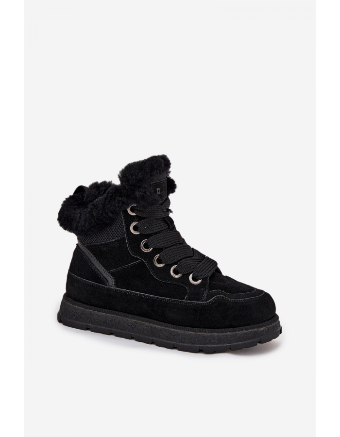 Dámské sněhule trapery Big Star v elegantní černé barvě spojují stylový vzhled s funkčností zimní obuvi. Vyšší platforma nabízí výbornou izolaci od chladu a stabilitu na kluzkém povrchu. Kožešinka uvnitř a na lemu boty zaručuje příjemné teplo během mrazivých dnů. Pevné šněrování s kovovými očky umožňuje perfektní přizpůsobení noze a dodává botám robustní outdoorový charakter.