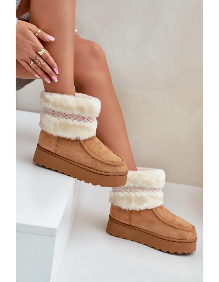 Sněhule z eko semiše na platformě jsou stylovou a funkční volbou na zimu. Svršek ozdobený kožešinou a módním vzorem jim dodává charakter, a zvýšená platforma izoluje od chladné podlahy, zajišťuje teplo a pohodlí. Ideální na mrazivé dny, spojují komfort s módním designem. Tento model je k dispozici také v dětských velikostech! Vytvořte sadu máma + dítě! Při výběru velikosti se prosím řiďte tabulkou velikostí.