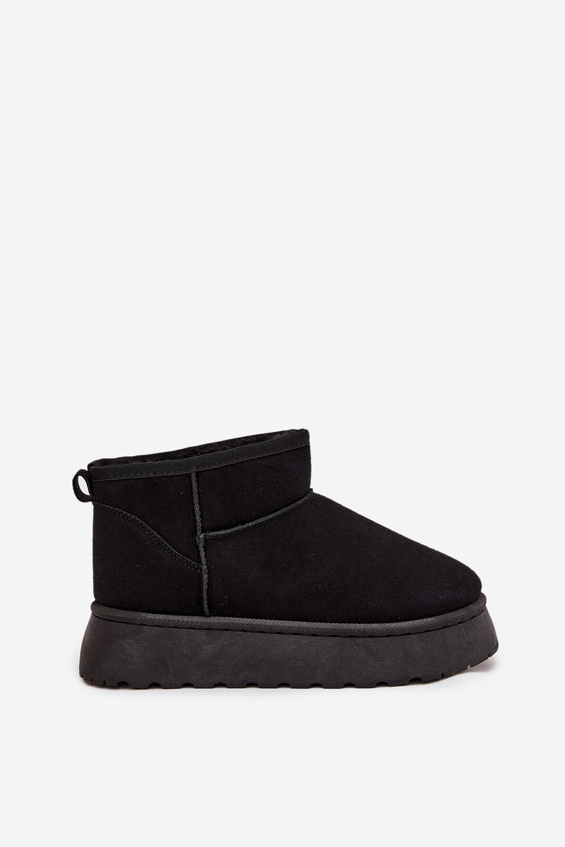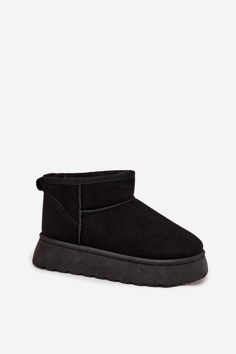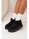 Černé dámské sněhule Vesirae s platformou a hřejivým kožíškem uvnitř poskytují maximální teplo a pohodlí během zimních dnů. Stabilní platforma chrání chodidlo před chladem a zajišťuje pohodlnou chůzi. Jednoduchý a univerzální design se snadno kombinuje s každodenními zimními outfity.