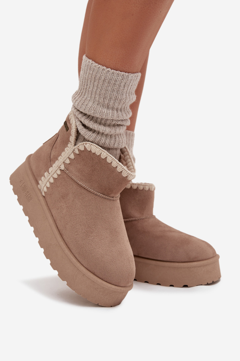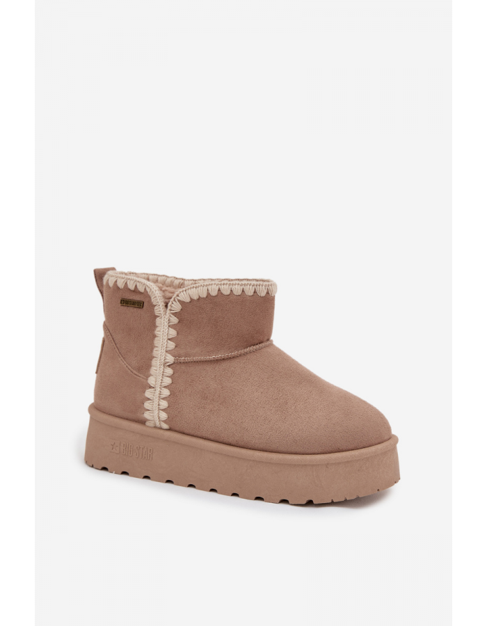Dámské zimní sněhule Big Star v elegantním béžovém provedení jsou ideální volbou pro ženy, které chtějí skloubit teplo, pohodlí a styl. Vyšší střih s ozdobným prošíváním chrání před chladem i sněhem, zatímco vnitřní kožíšek poskytuje příjemné zateplení během zimních měsíců. Výrazná platformová podrážka s protiskluzovým vzorem zajišťuje stabilitu a zároveň dodává modelu moderní vzhled.