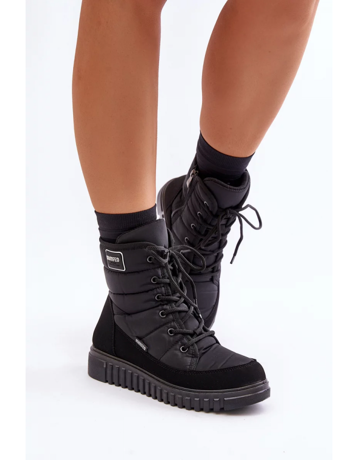 Dámské sněhule, které se vyznačují pohodlím. Vestavěné na platformě. Vnitřek zateplený materiálem typu fleece dokonale izoluje od chladu, zajišťuje teplo i v nejchladnějších dnech. Zapínané na zámek a šněrovací. Dokonalé pro každodenní použití v zimních měsících! Při výběru velikosti se prosím řiďte tabulkou velikostí.